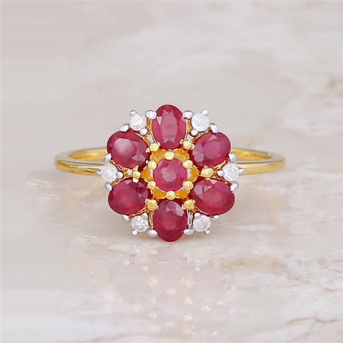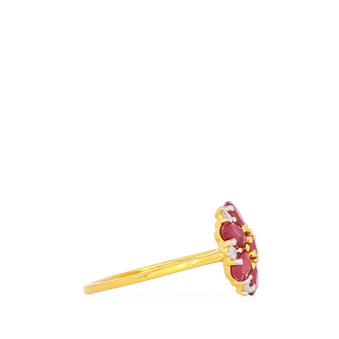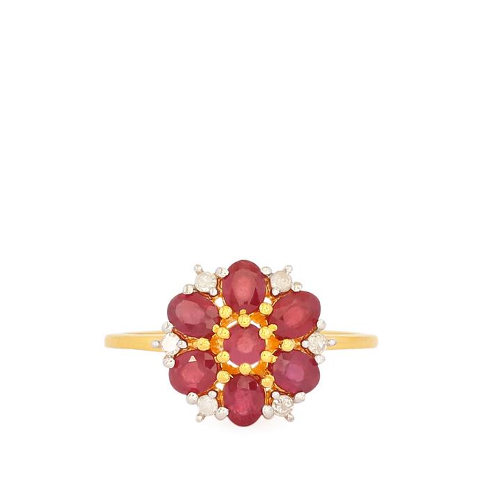 Thai Ruby Ring with Diamond in Gold Plated Sterling Silver