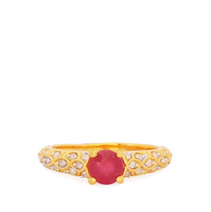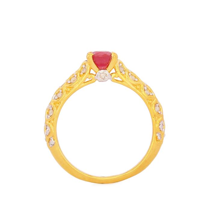 Thai Ruby Ring with Diamond in Gold Plated Sterling Silver