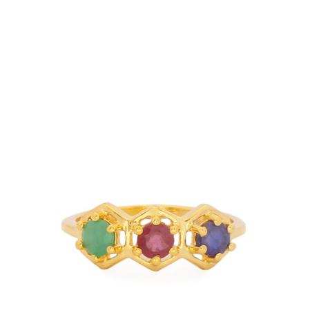 Thai Ruby Ring with Emerald & Blue Sapphire in Gold Plated Sterling Silver