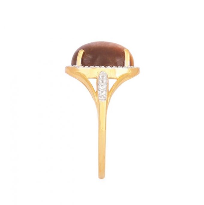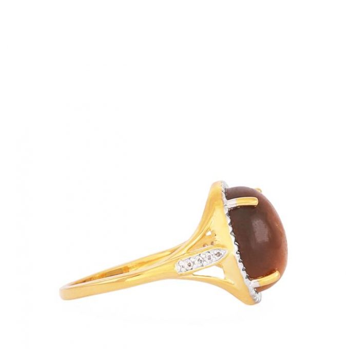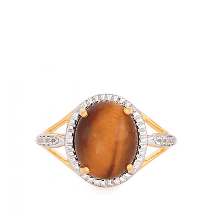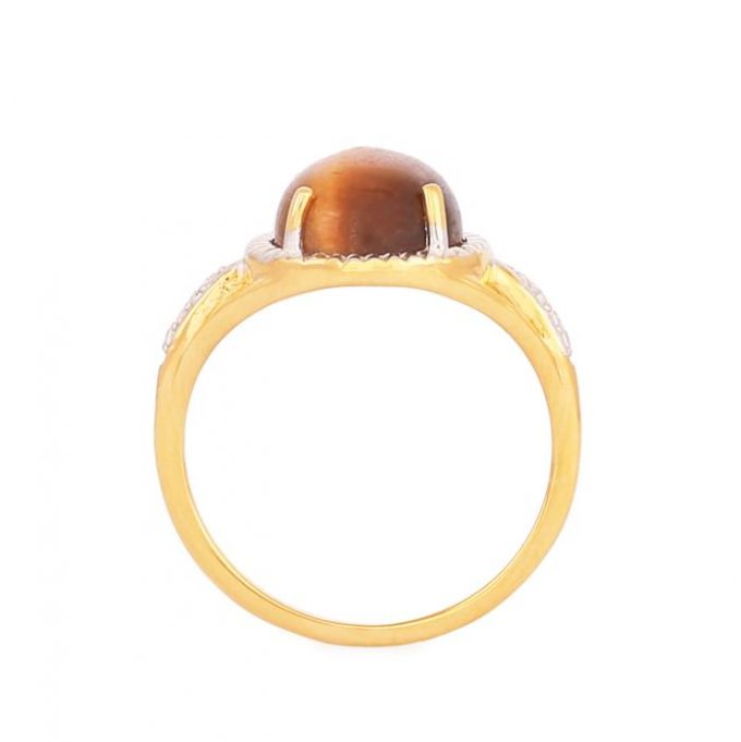 Tigers Eye Ring with White Topaz in Gold Plated Sterling Silver