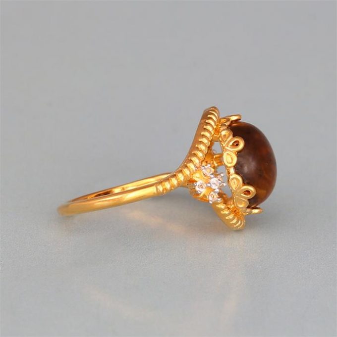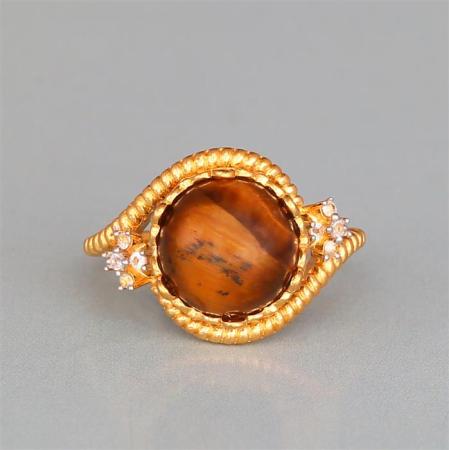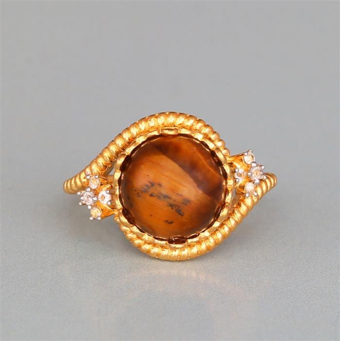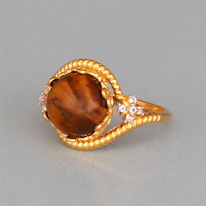 Tigers Eye Ring with White Topaz in Gold Plated Sterling Silver