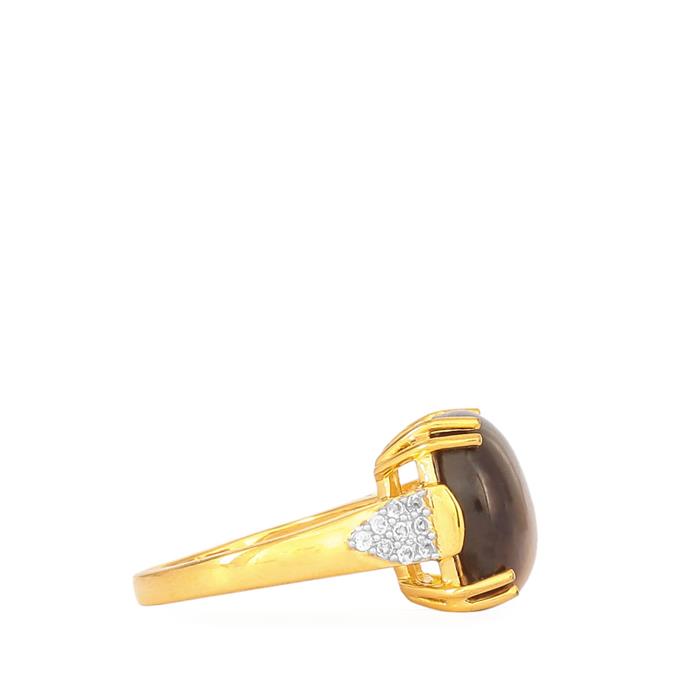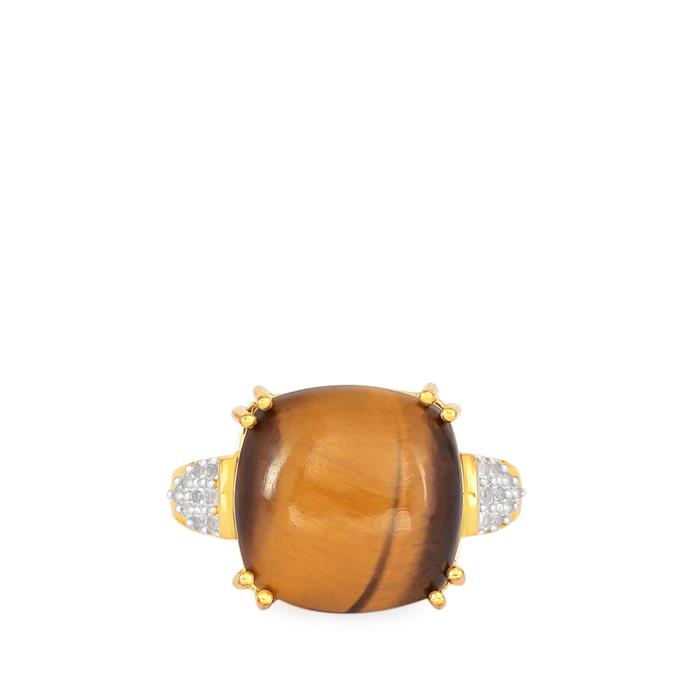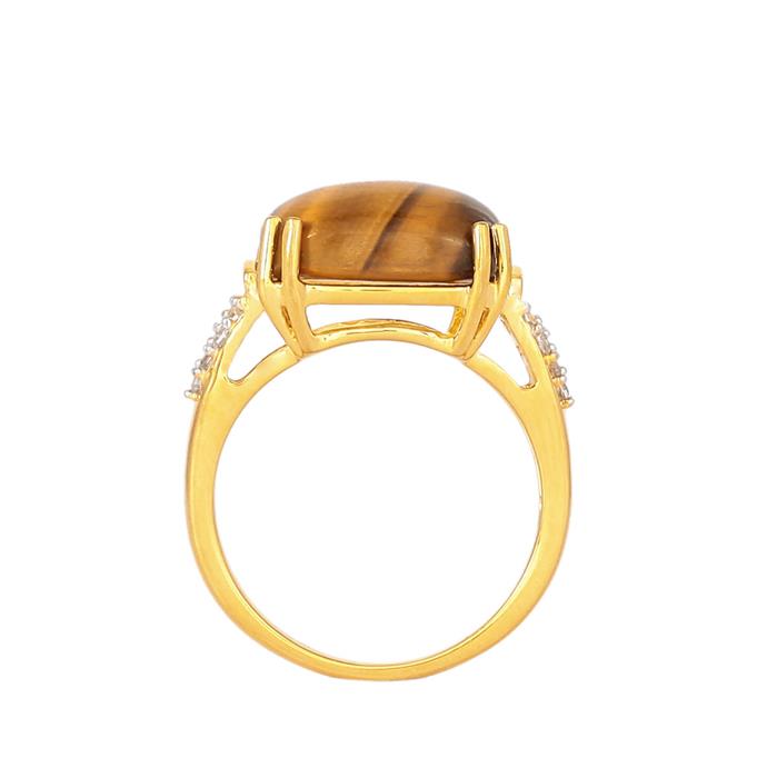 Tigers Eye Ring with White Topaz in Gold Plated Sterling Silver