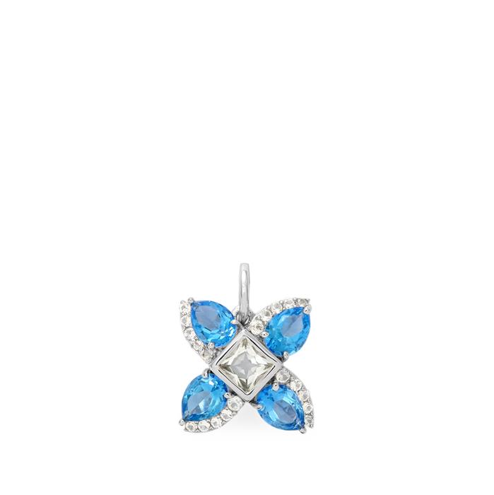 True Blue Topaz Pendant with White Topaz in Rhodium Flash Sterling Silver