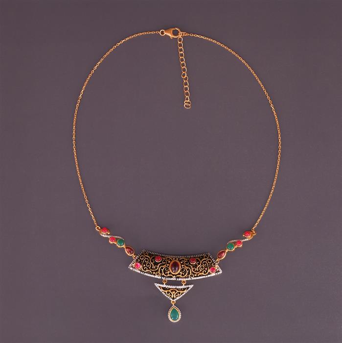 Turkish Collection Necklace with P. Quartz, G. Onyx & Rhodolite in GP 925 Silver