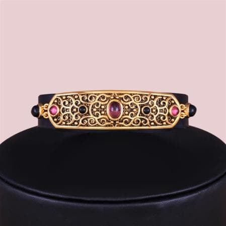 Turkish Collection Rhodolite Garnet Bracelet with B. Onyx in G.P. 925 Silver
