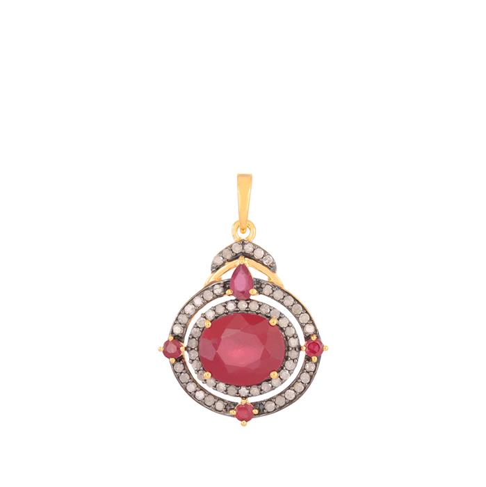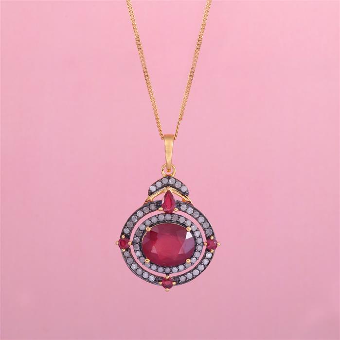 Victorian Pendant with Ruby & 0.64 Ct. Diamonds in Gold Plated Sterling Silver