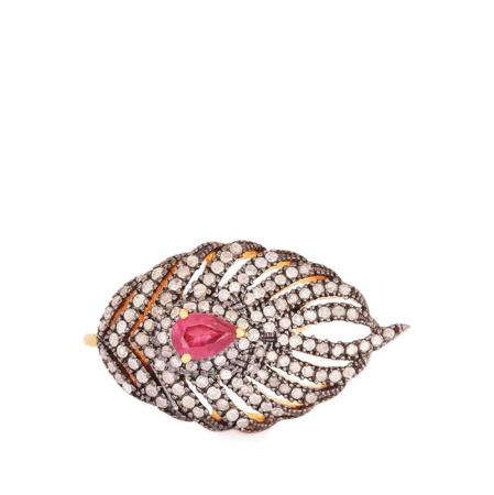 Victorian Ring with Ruby & 0.74 Ct.Diamonds in Gold Plated Sterling Silver