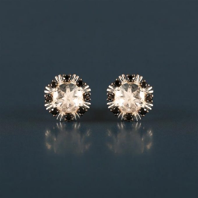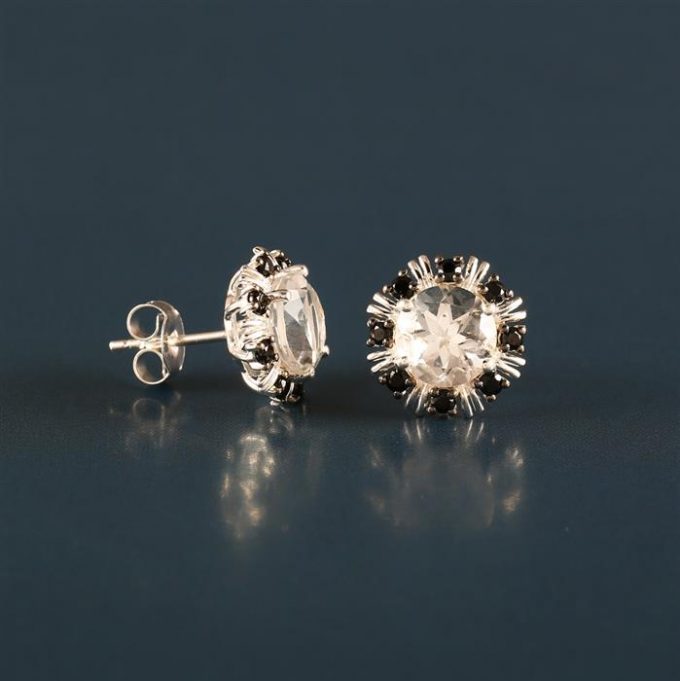 White Quartz Earrings with Black Spinel in Sterling Silver