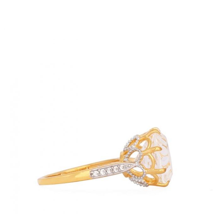 White Quartz Portuguese Concave Cut Ring with White Topaz in G.P. 925 Silver