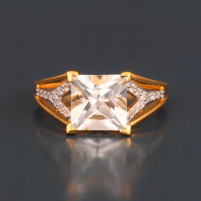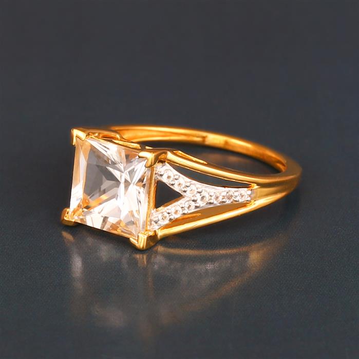 White Quartz Ring with White Topaz in Gold Plated Sterling Silver