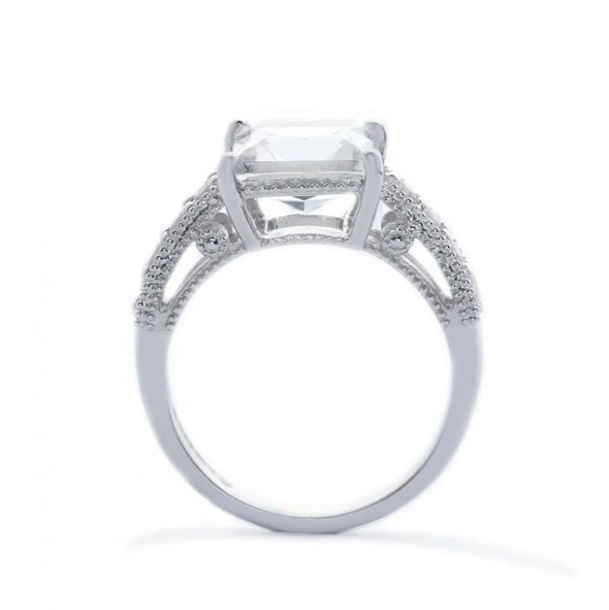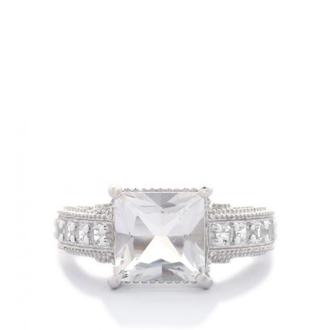 White Quartz Ring with White Topaz in Rhodium Flash Sterling Silver