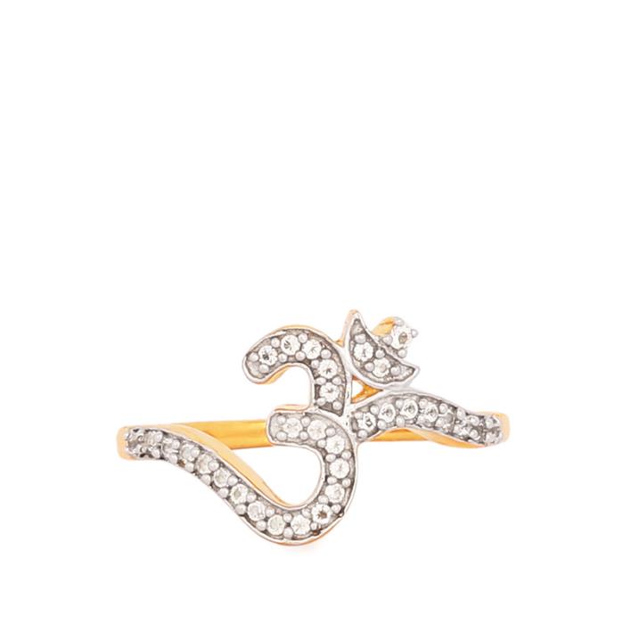 White Topaz Om Ring in Gold Plated Sterling Silver