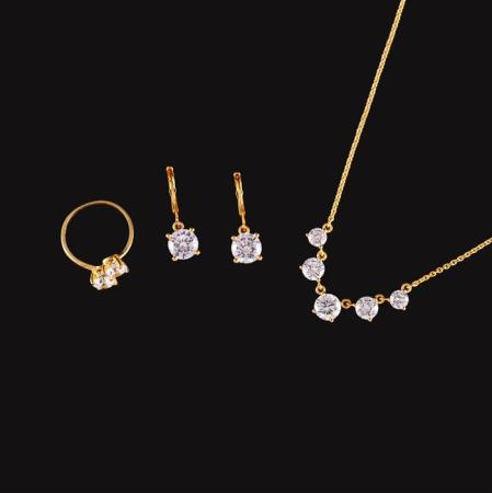 Zirconia Earrings-Ring-Necklace Set in Alloy